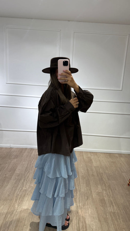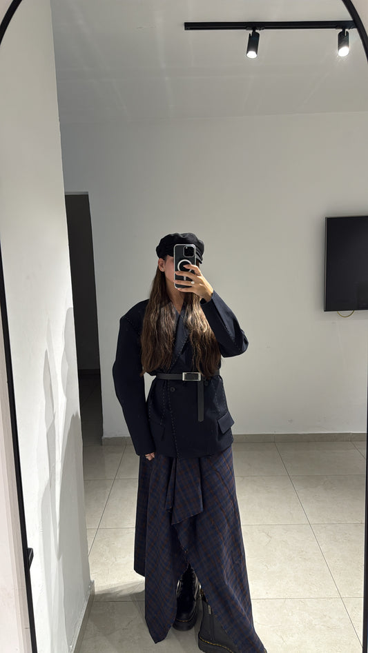 Sold Outחצאית אי סימטרית משובצת כחולה