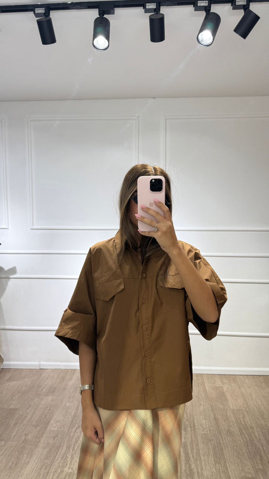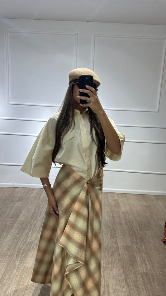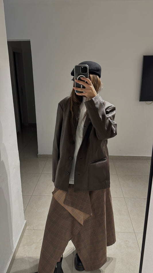 Sold Outחצאית אי סימטרית משובצת זית 100% צמר