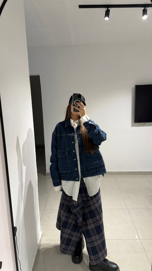 חצאית אי סימטרית משובצת כחולה 100% צמר
