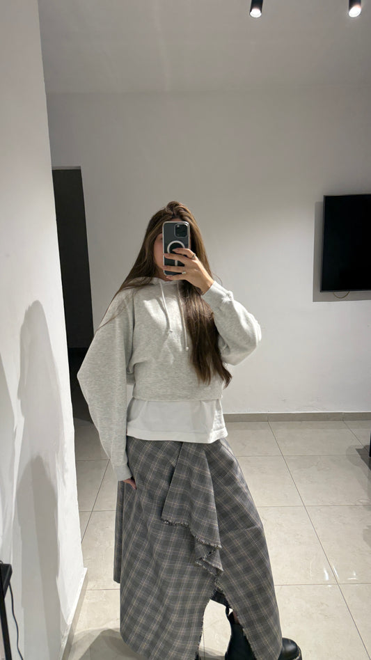 Sold Outחצאית אי סימטרית משובצת כחולה
