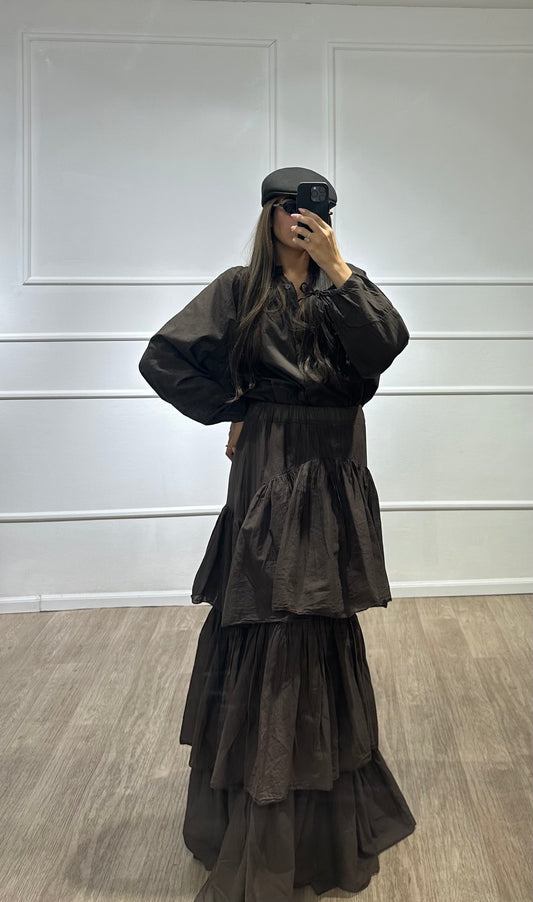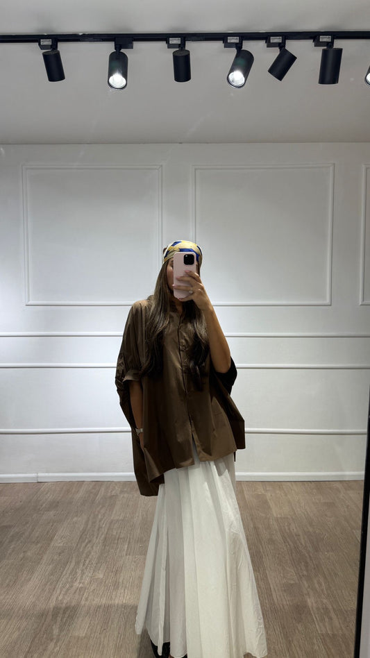 חולצה ארוכה אוברסייז חומה