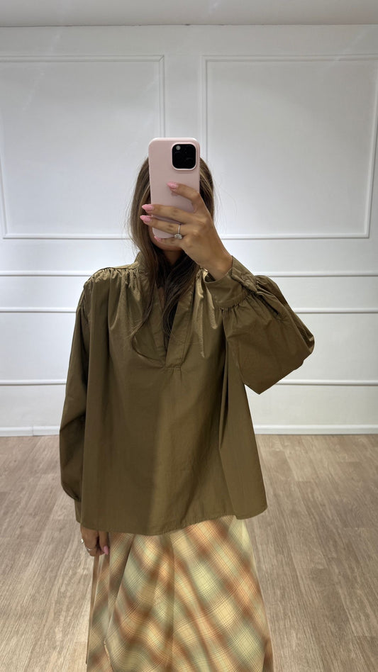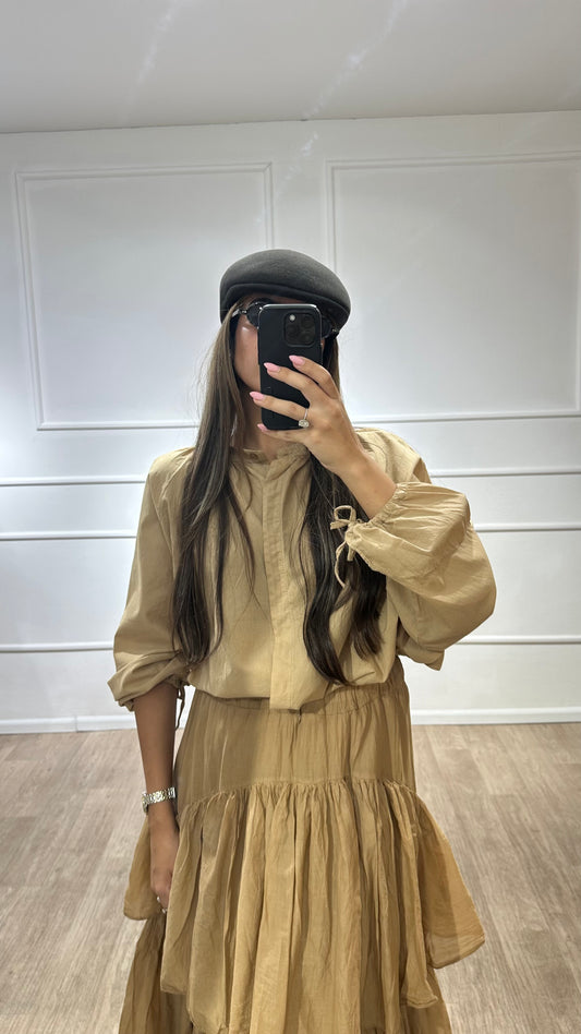 חולצה עם קשירה בשרוול חום