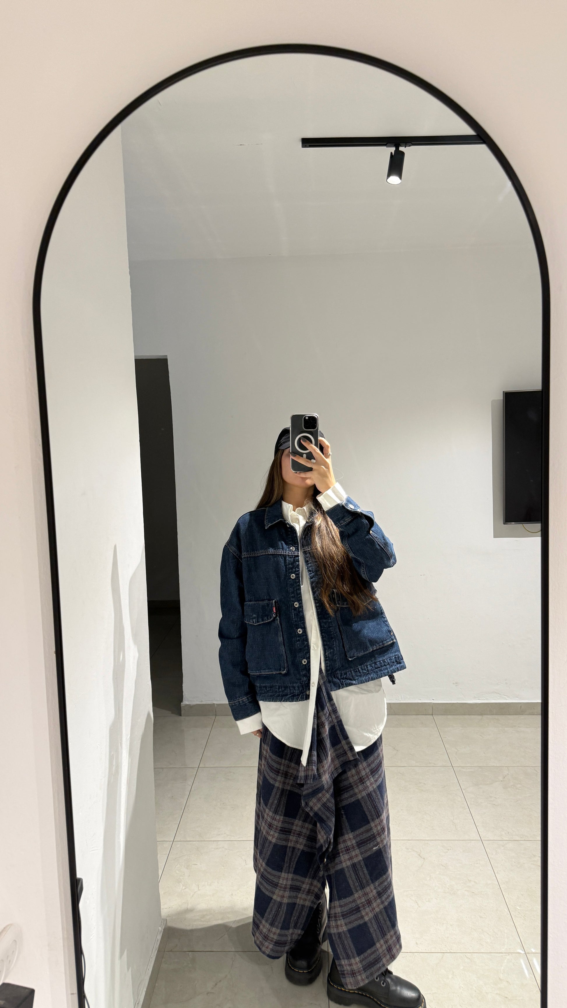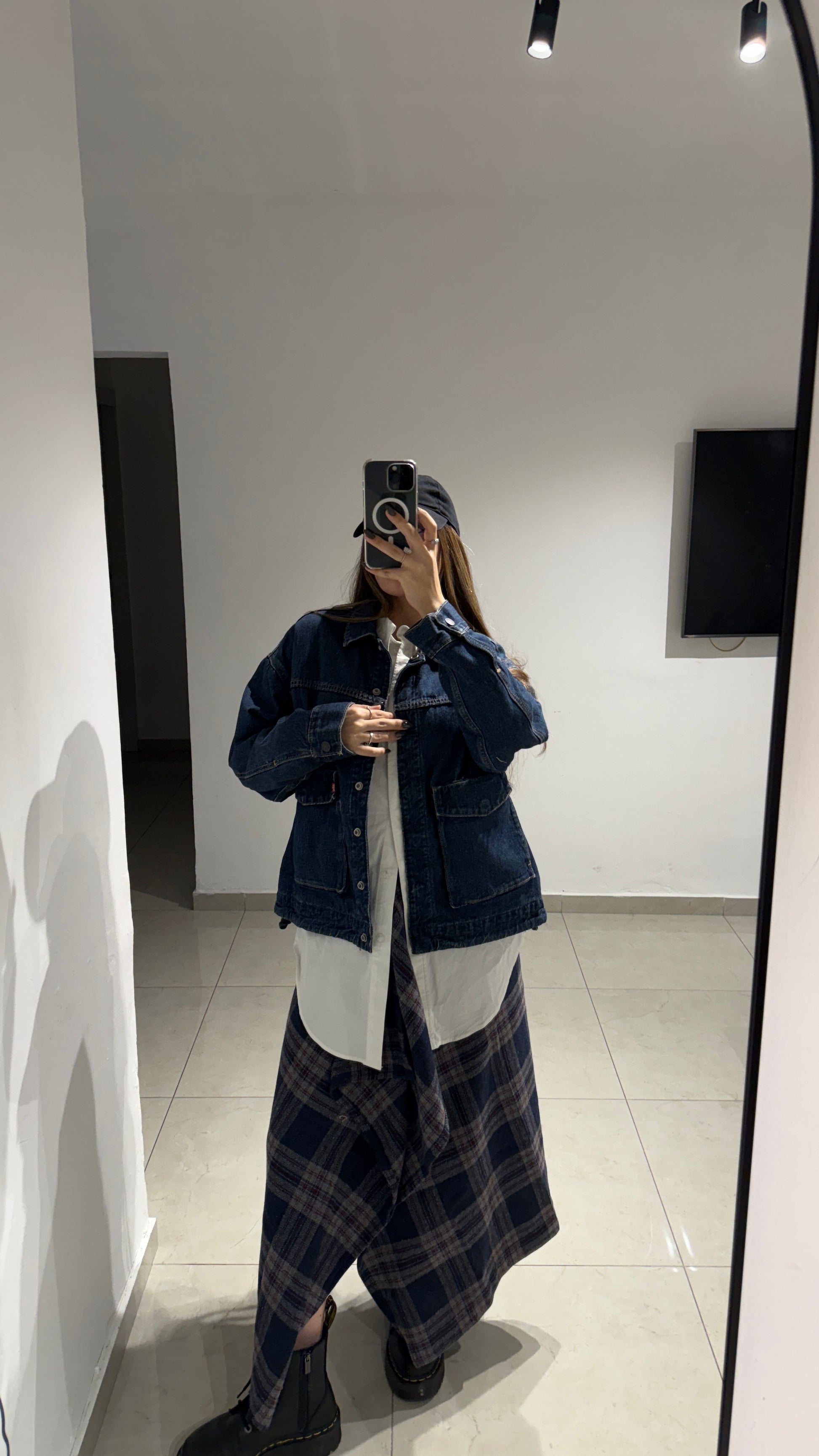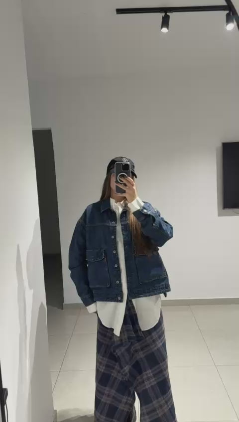 חצאית אי סימטרית משובצת כחולה 100% צמר
