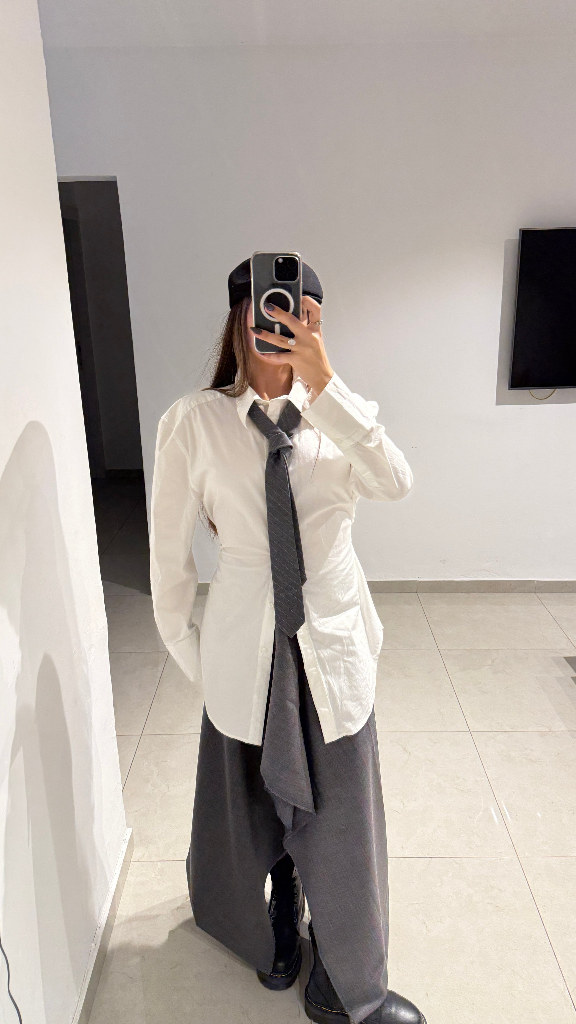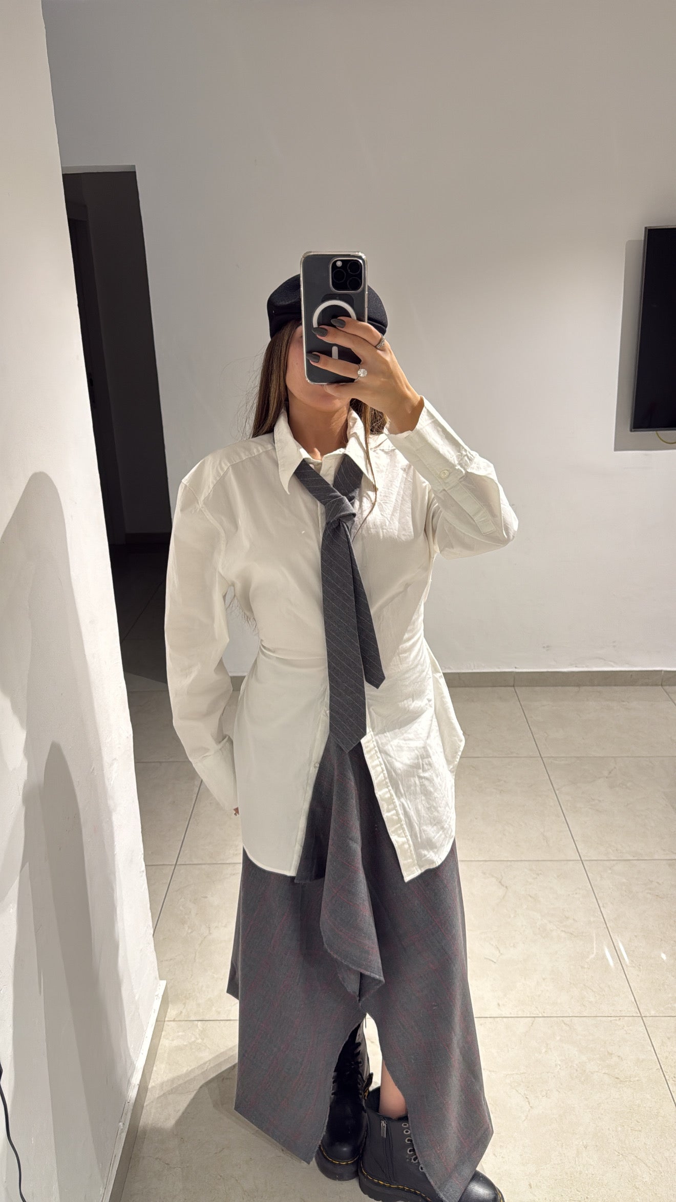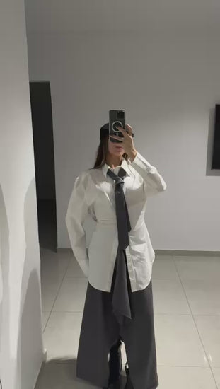 חצאית אי סימטרית משובצת אפורה וורד