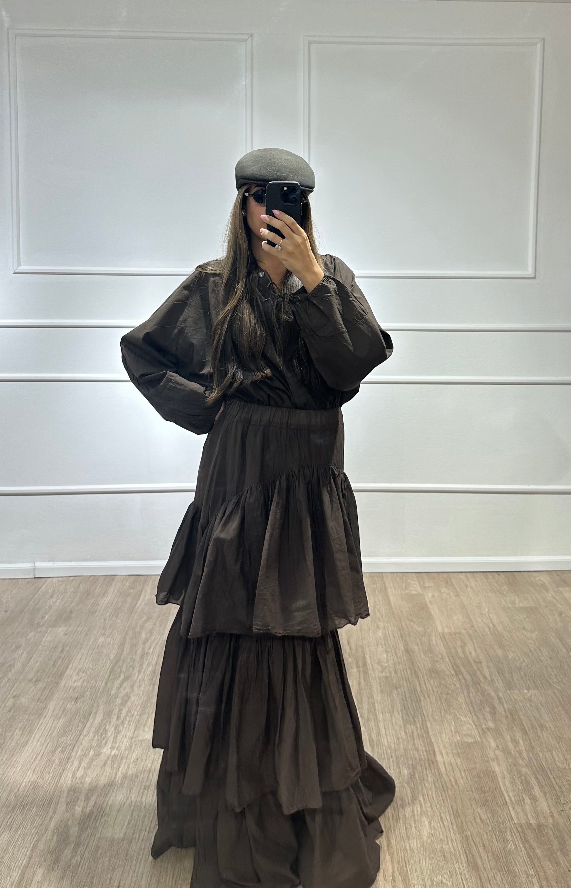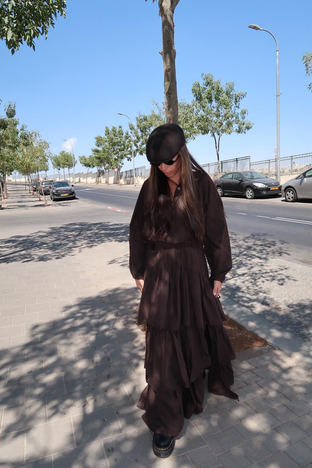 חולצה עם קשירה בשרוול חום